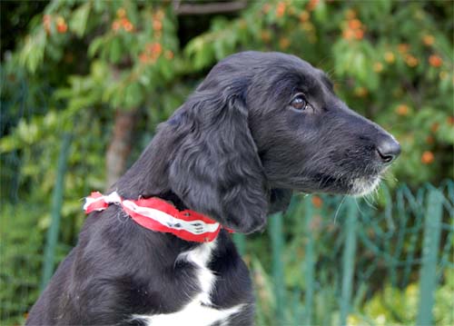 Black female "pearl-coloured red collar"